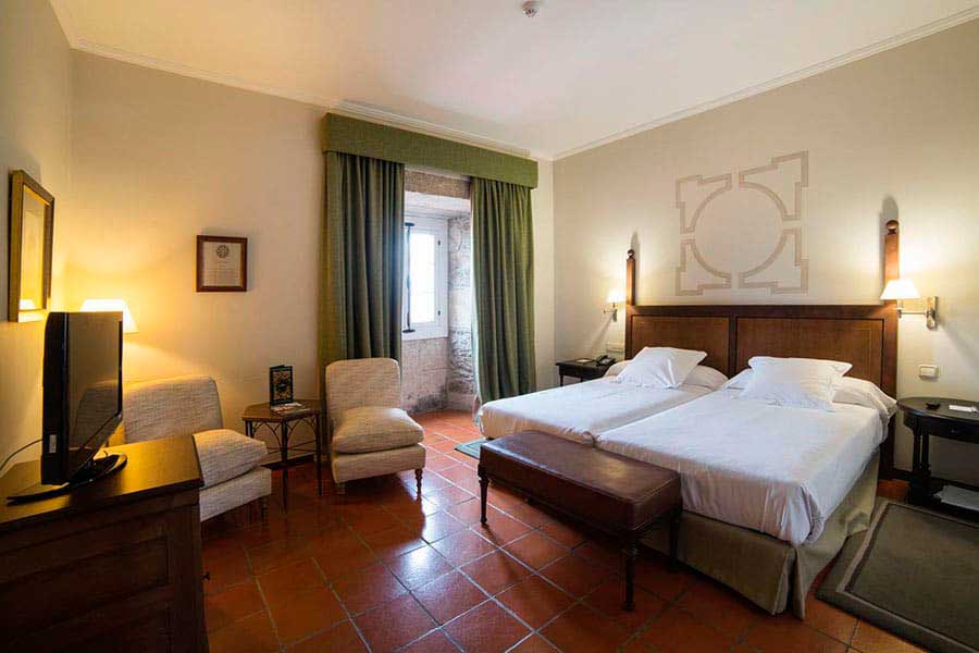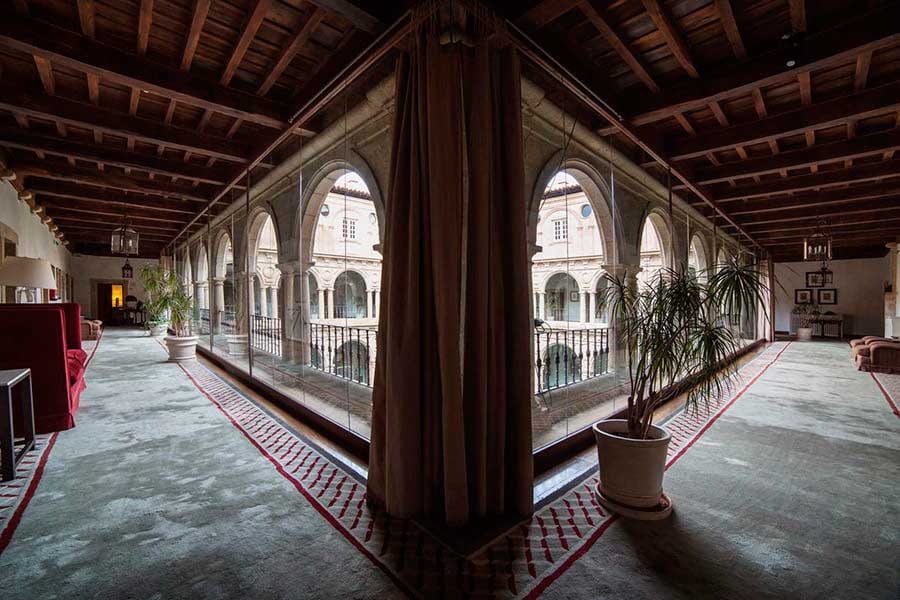 The convent of San Vicente del Pino stands above the town of Monforte. Next to it, the Palace of the Count of Lemos is also part of the Parador. Of great beauty and mystery of the deep Galicia, it has a cozy decoration that invites you to settle in and discover the area, or enjoy your stay in an intellectual retreat.